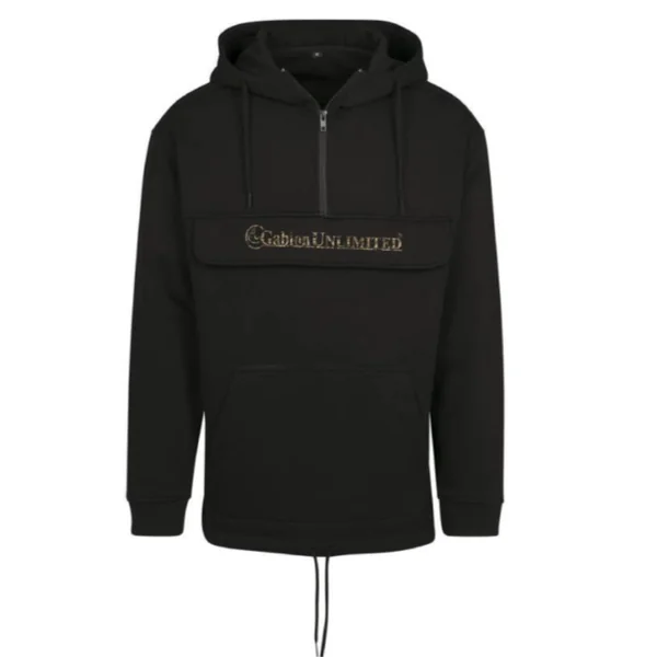 Composition : 80% polyester, 20% coton. Capuche avec liens de serrage. Poche kangourou zippée sur le devant. Col à demi zippé. Logo Gabion Unlimited sur le devant en camo. Vol de canards et GU en camo à l'arrière du sweat. Coloris : noir. Tailles : du S au 4XL.