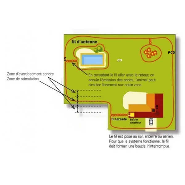 -Pour que le système fonctionne, le fil doit former une boucle ininterrompue qui part du boîtier émetteur et y revient.