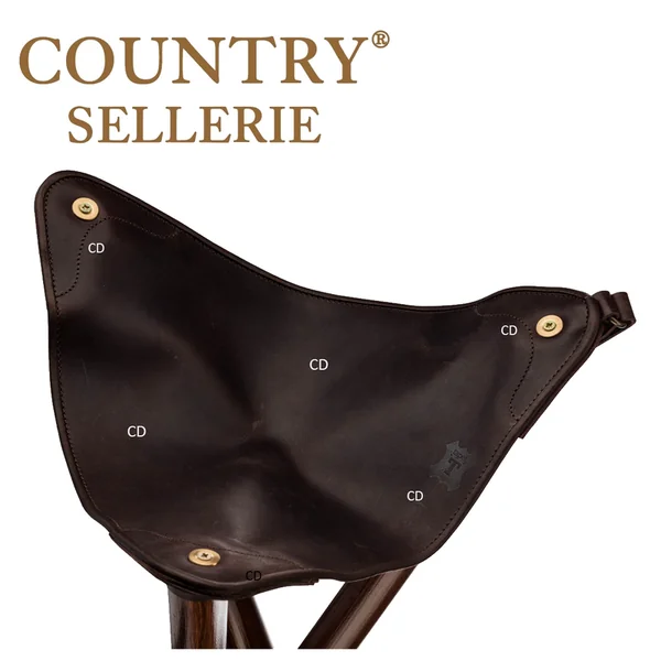 TABOURET TREPIED PLIANT BOIS COUNTRY SELLERIE 65CM :Caractéristiques :-Siège de battue à emmener facilement en action de chasse.-Dépliage et mise en place instantanés tout comme la reprise pour le départ.-Assure un confort de chasse et évite la fatigue du tireur qui attend le gibier lors de la battue.-Assise en cuir épais et gansé.-Angles triple couche pour plus de résistance.-Trépied en bois vernis et articulation laiton massif.-Courroie cuir de transport en bandoulière.-Fabrication européenne, cuir finement gansé.-Coloris : Brun. -Hauteur : 65cm.