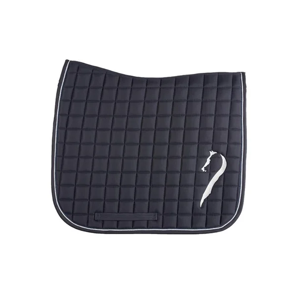 Le tapis de dressage Antares s’adapte au dos pour le plus grand confort du cheval. Il possède une coupe ergonomique et technique qui assure le dégagement du garrot et un réel confort au cheval. Le tapis de dressage Antarès présente une coupe spécialement conçue pour s’adapter parfaitement à une selle de dressage. Sa forme ergonomique épouse la courbe du dos du cheval tout en laissant le garrot dégagé pour assurer son confort. Fabriqué avec une doublure en nid d’abeille, il favorise l’absorption de la transpiration. Chaque côté du tapis est orné de la griffe Antarès brodée en couleur « argent », accompagnée d’un liseré assorti pour une touche élégante. Deux passants de sangle assurent une fixation stable sous la selle. Ce tapis peut être associé à des amortisseurs pour un confort optimal pour votre cheval.