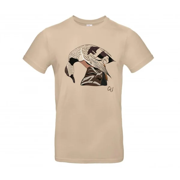 Le tee-shirt « Chipeau » de la marque Gabion Unlimited est un modèle à manches courtes de couleur beige, illustré d’un canard chipeau prélevé et tenu par le chasseur. Il a été conçu spécialement pour les amateurs de chasse au gibier d’eau.