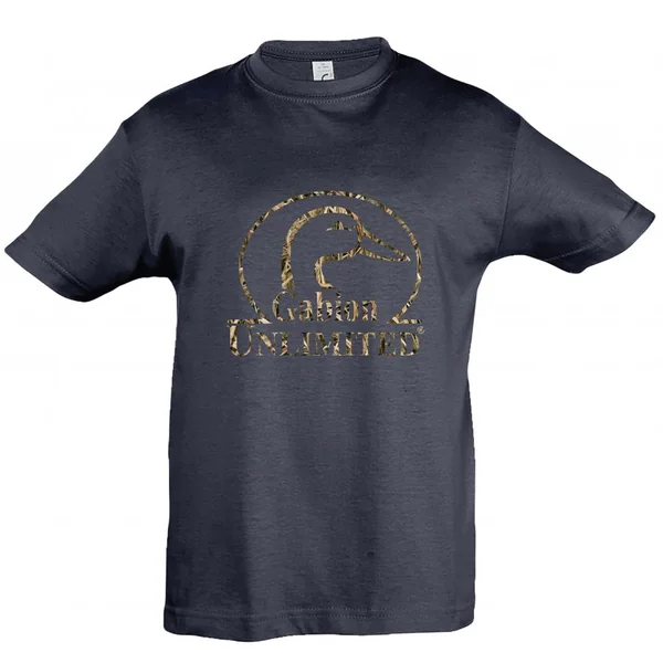 Composition : 100% coton. Coloris : bleu marine avec logo Gabion Unlimited floqué camo. Tailles : du 3/4 ans au 12/13 ans.