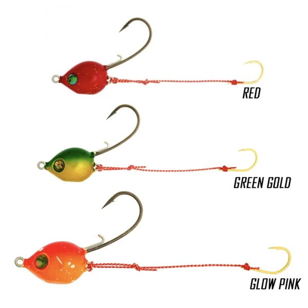 Tenya Daiwa Jig Head – 56 gr RED Tenya Daiwa au profil rond parfaitement équilibré et aux finitions soignées. Il est muni d’un hameçon fixe, robuste et adapté à l’usage de la crevette mais aussi d’un assist-hook sur tresse. Ses deux hameçons made in Japan ont un piquant et une durabilité extrêmes. Les finitions, coloris et oeils 3D sont soignés et très attractifs. Avis Tenya Daiwa Jig Head – 56 gr RED Écrivez votre avis