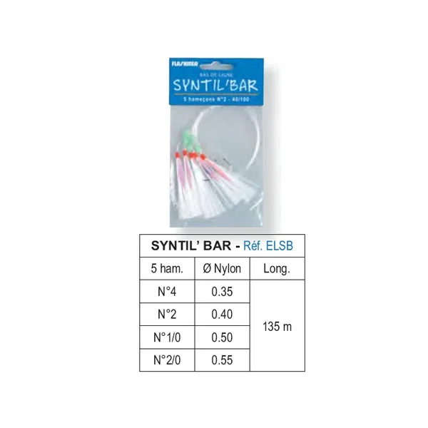 | Syntil Bar | 5 Hameçons N°1/0 Longueur: 135 m Nylon: 0.50 5 Hameçons N°2/0 5 Hameçons N°2 5 Hameçons N°4 |