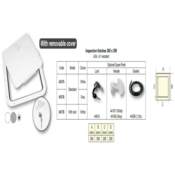 Trappe d’accès Nuova Rade 380×380 mm Trappe d’accès avec porte amovible. Fabrication ASA, couleur blanche ou grise. Avec ou sans serrure. Avis Trappe d’accès Nuova Rade 380×380 mm Écrivez votre avis