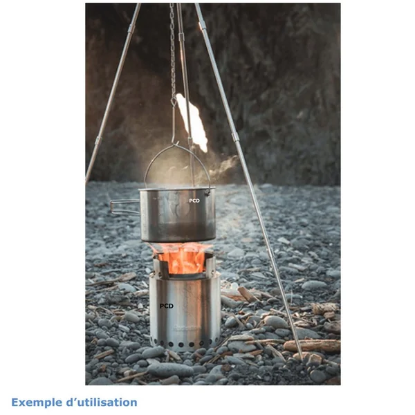 Vos cuissons pourront ainsi s’effectuer à l’aide de ce trépied et de votre réchaud Solo Stove.