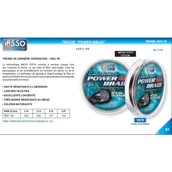 Livrée sous blister Avis Tresse Asso Power Braid Noire 130 m 20/100 Écrivez votre avis