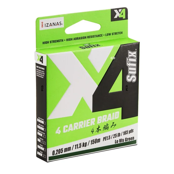 Tressée 4 brinsde marqueSufix, fabriquée à partir defibres UHMPEd’origine100% japonaise.