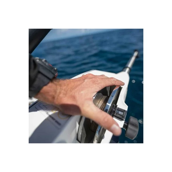 Grâce à ce type de treuil (downrigger), le système exclusif de contrôle de la descente permet de positionner précisément le lest, et donc le leurre à une profondeur donnée tout en évitant les à-coups qui effraient le poisson. Ce contrôle se fait grâce à une manivelle avec embrayage-frein intégré manoeuvrable d’une main et permettant une retenue contrôlée du câble pendant la descente.