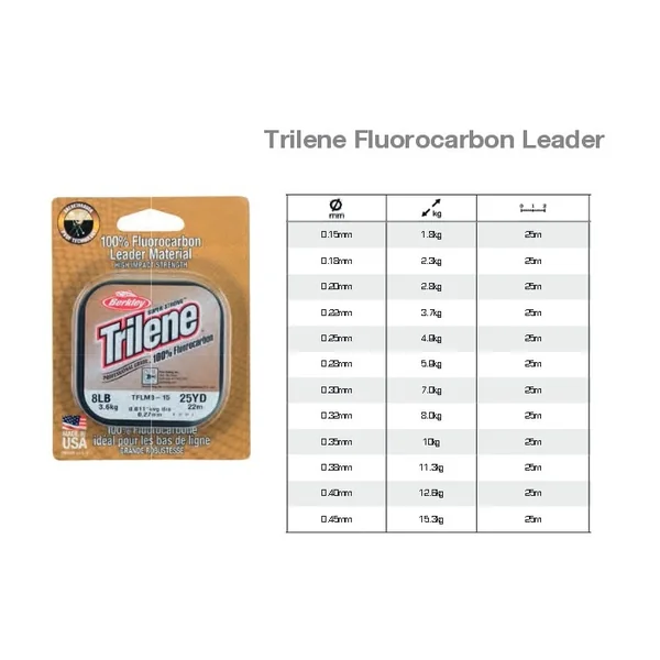 Trilene Berkley Fluorocarbon Leader 25 m Un 100 % fluorocarbone de grande qualité qui trouve sa place au sein de la famille Trilene.