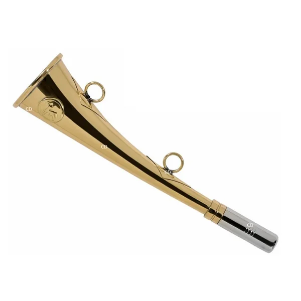 Trompe plate, courbe, en laiton, traité anti-oxydation, avec anneaux, de marque Ligne Verney-Carron.