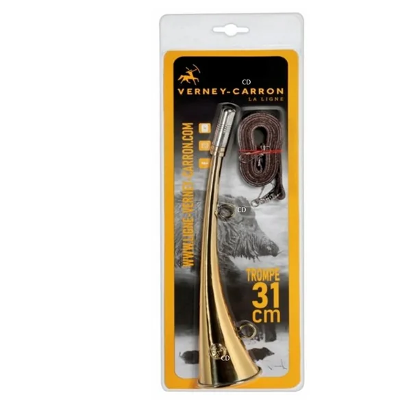 Trompe plate, courbe, en laiton, traité anti-oxydation, avec anneaux, de marque Pro Hunt.