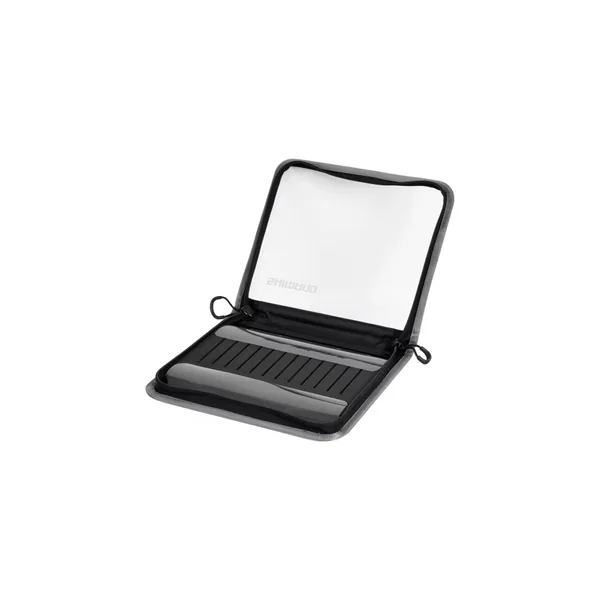 Cette pochette est équipée de fermetures éclair robustes en nylon avec des cordons élastiques, ainsi qu’une coque externe en plastique transparent solide qui protège contre les éléments extérieurs. À l’intérieur, un rembourrage en mousse EVA, agrémenté de rainures, assure un maintien ferme et sécurisé des turluttes, évitant ainsi les dommages pendant le transport.