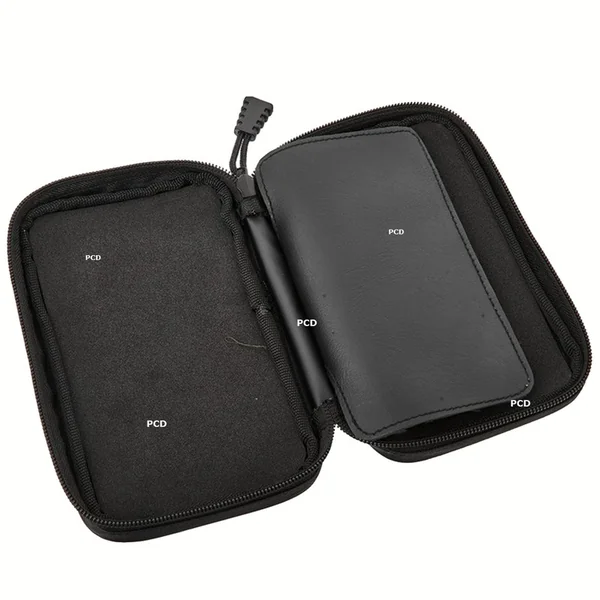 Cette trousse pratique possède deux surfaces de rangement séparées par un intercalaire rigide.