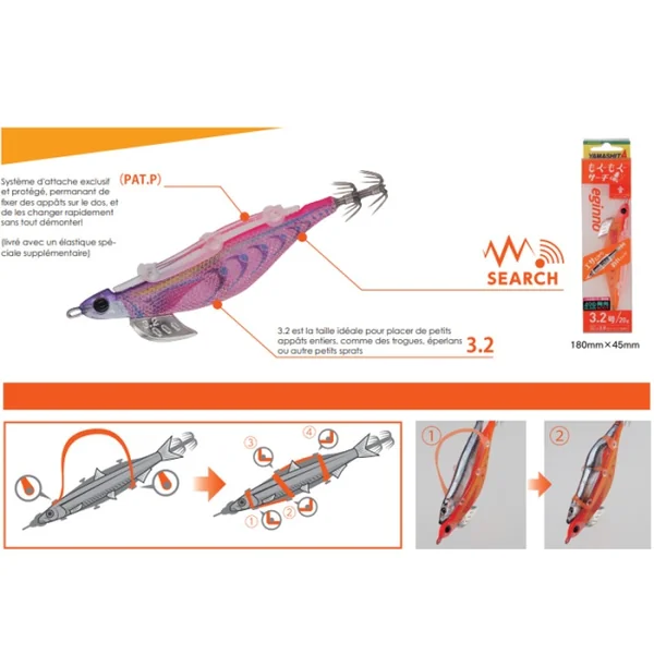 Turlutte Yamashita Eginno Mogumogu Search 3.2 Les nouvelles Yamashita Eginno MOGU MOGU, sont des Egi hybrides qui associent les avantages du leurre avec l’attractivité d’un appât naturel.