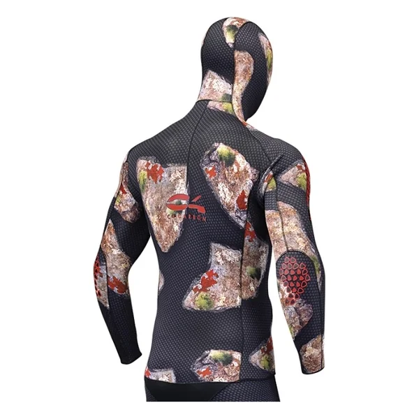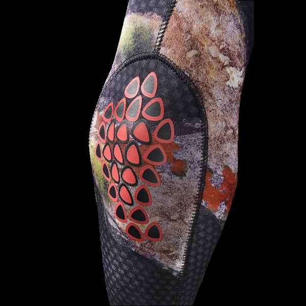 – Le design exclusif de cette combinaison comporte un fond de couleur fibre de carbone avec des taches de fond marin camoufle? en 3D.