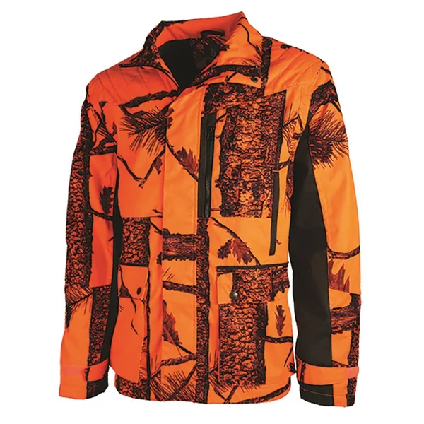 Composition : 100% polyester. Doublure : 65% polyester, 35% coton. Membrane SL-TEX. 1 poche poitrine zippée. 2 poches repose-mains. 2 grandes poches basses avec rabbat pression. Poches permis et portable à l’intérieur. Carnier zippé. Coloris : camo orange. Tailles : du 8 ans au 16 ans.