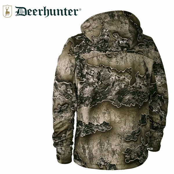 Arborant le Deerhunter Stormliner sur les épaules et le haut des manches, sa matière est imperméable, coupe-vent et extensible.