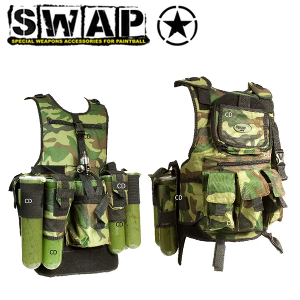 VESTE TACTIQUE SWAP CAMO :Caractéristiques :-Veste tactique, de marque SWAP.-Veste tactique avec 4 porte pots et 1 porte bouteille à l’arrière.-Pochette à l’avant.-Vendu sans les pots ni la bouteille.-Coloris : Camouflage.*Taille Unique.