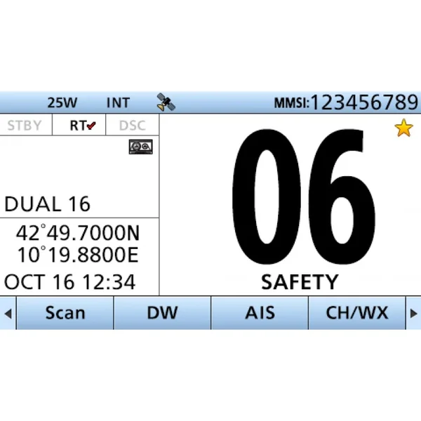 Véritable centrale de communication, elle offre des fonctionnalités très étendues : AIS et ASN incorporés, récepteur GNSS intégré (GPS, GLONASS, SBAS), large écran couleur TFT à matrice active, enregistrement automatique des communications, réducteur de bruit pour une communication plus confortable, fonction AquaQuake™ pour éjection d’eau, canaux privés programmables, etc.