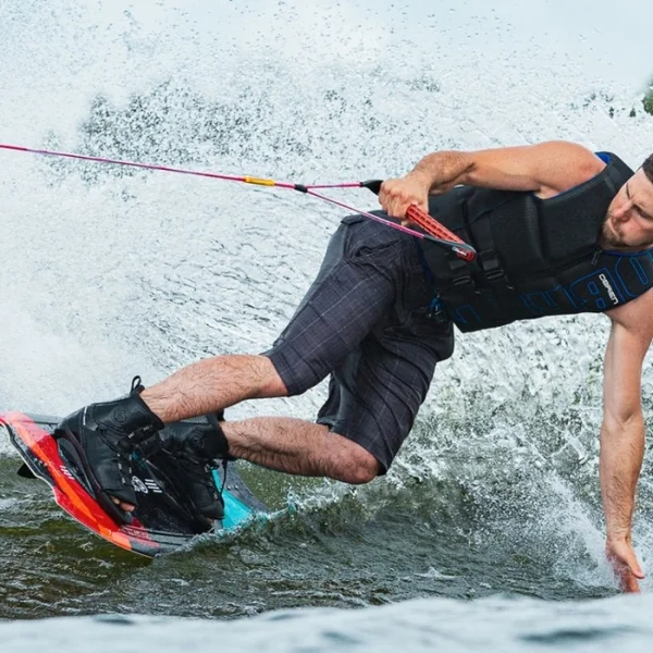 La stance du wake System Obrien peut être réglée en fonction du confort et de la préférence du rider, ainsi que de sa taille et de son poids (c’est le même principe que pour les skis, le snowboard etc…). La stance (écartement des fixations des chausses) d’un wake doit être un peu plus grande que la largeur du bassin et varie en fonction de votre ressenti sur la planche.